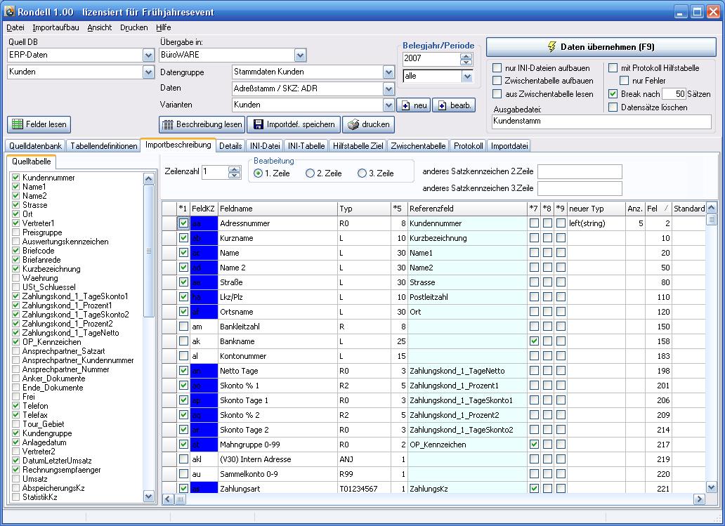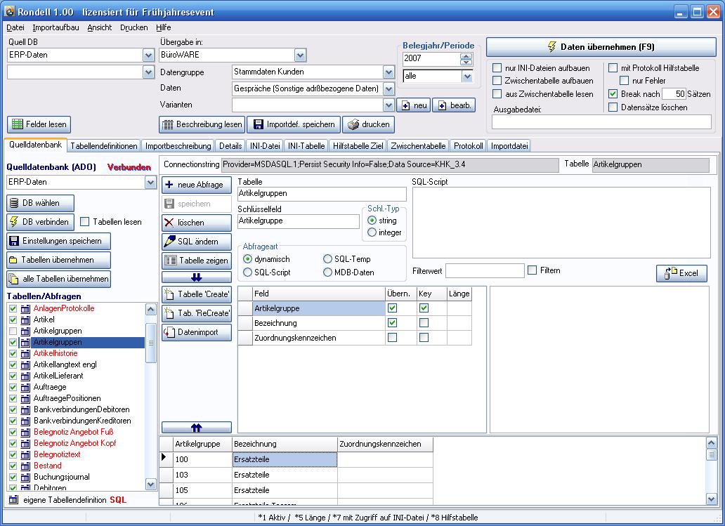 Datenaustauch (ftp) mit der Zentrale verbunden. Stammdaten werden
